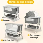 3 in 1 Bedside Bassinet for Baby, with Wheels